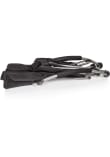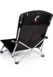 - Heavy-duty, fold-flat portable beach chair that has padded armrests