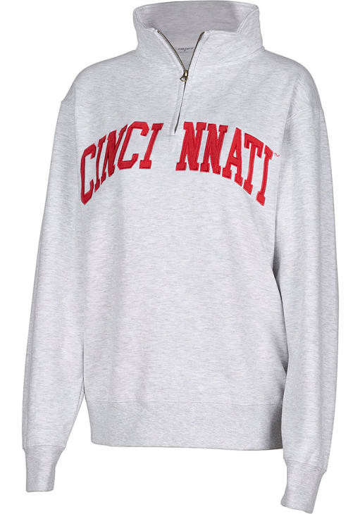 Embrace the warmth and showcase your Bearcats pride with our Cincinnati Bearcats Long Sleeve Qtr Zip. This Womens Ash Sport Long Sleeve Pullover offers a applique team name on center chest for the perfect combination of comfort and style. Elevate your everyday look with this must-have Cincinnati Bearcats Long Sleeve Qtr Zip.