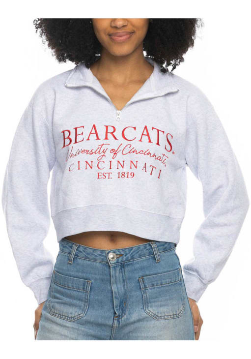 Embrace the warmth and showcase your Bearcats pride with our Cincinnati Bearcats Long Sleeve Qtr Zip. This Womens Ash Sport Long Sleeve Pullover offers a embroidered team name on center chest for the perfect combination of comfort and style. Elevate your everyday look with this must-have Cincinnati Bearcats Long Sleeve Qtr Zip.
