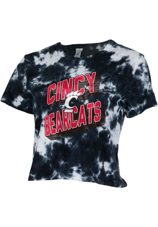 Display your team spirit with this remarkable Cincinnati Bearcats Black Tie Dye Crop Short Sleeve T-Shirt! The Cincinnati Short Sleeve Tee showcases a screen print team name and logo on center chest that truly sets it apart. Stand out from the crowd and proudly declare your allegiance to the Bearcats with this exceptional Black Cincinnati T-Shirt. Go Bearcats!!