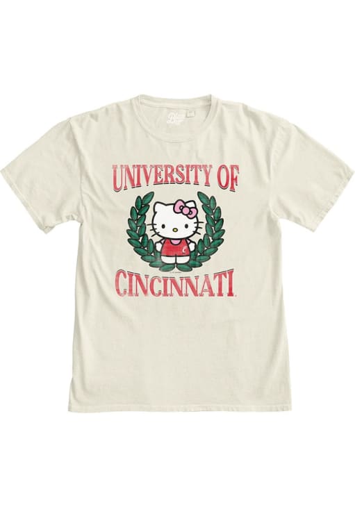 Display your team spirit with this remarkable Cincinnati Bearcats Ivory Hello Two Ways Short Sleeve T-Shirt! The Cincinnati Short Sleeve Tee showcases a screen print team graphic with Hello Kitty on center chest and center back that truly sets it apart. Stand out from the crowd and proudly declare your allegiance to the Bearcats with this exceptional Ivory Cincinnati T-Shirt. Go Bearcats!!