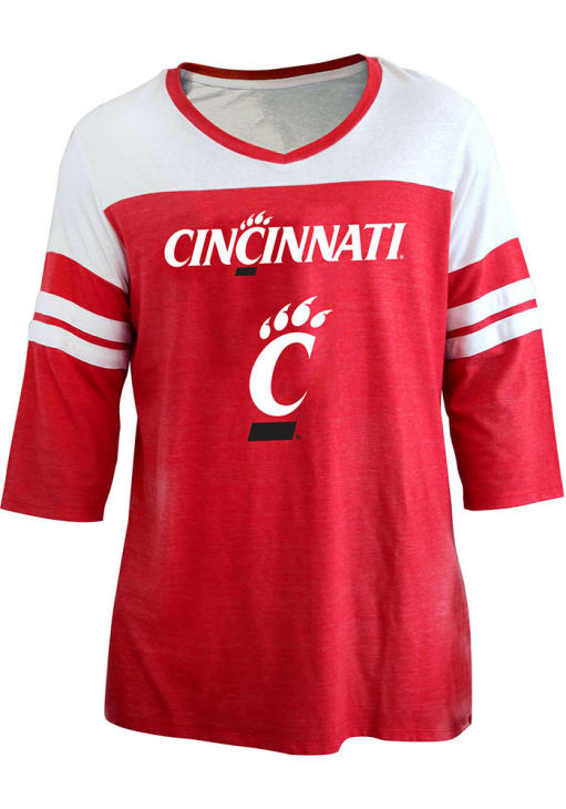 Size Chart for Womens Red Cincinnati Bearcats Contrast 3/4 + LS Tee