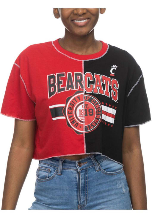 Display your team spirit with this remarkable Cincinnati Bearcats Red Crop Patchwork Short Sleeve T-Shirt! The Cincinnati Short Sleeve Tee showcases a screen print team name and logo on center chest that truly sets it apart. Stand out from the crowd and proudly declare your allegiance to the Bearcats with this exceptional Red Cincinnati T-Shirt. Go Bearcats!!