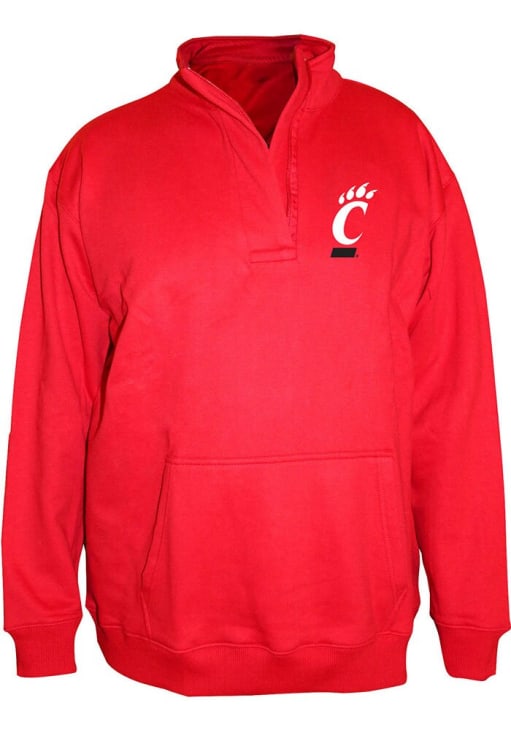 Embrace the warmth and showcase your Bearcats pride with our Cincinnati Bearcats Long Sleeve Qtr Zip. This Womens Red Mock Neck+ Long Sleeve Pullover offers a screen print team logo at left chest for the perfect combination of comfort and style. Elevate your everyday look with this must-have Cincinnati Bearcats Long Sleeve Qtr Zip.
