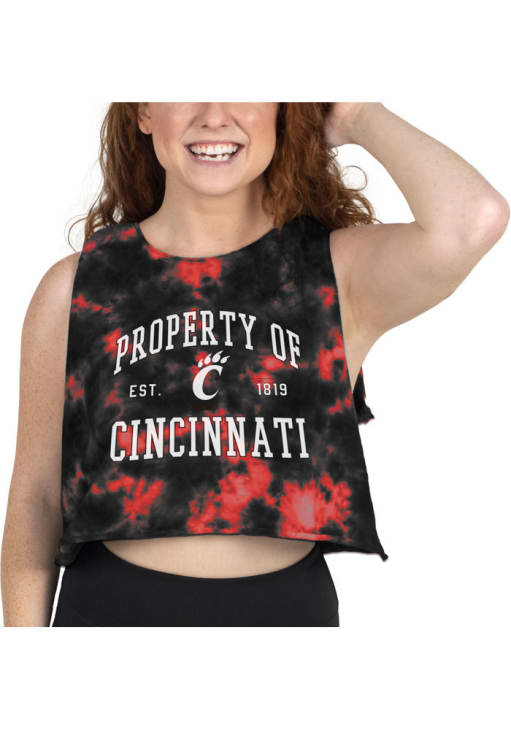 Elevate your tailgating style with this Cincinnati Bearcats Womens Tank Top. Stay fashionable and comfortable in the refreshing Red Tie Dye Muscle Sleeveless Shirt. Discover the enticing details of this Cincinnati Tank Top, showcasing a center front graphic with team name that's sure to impress.