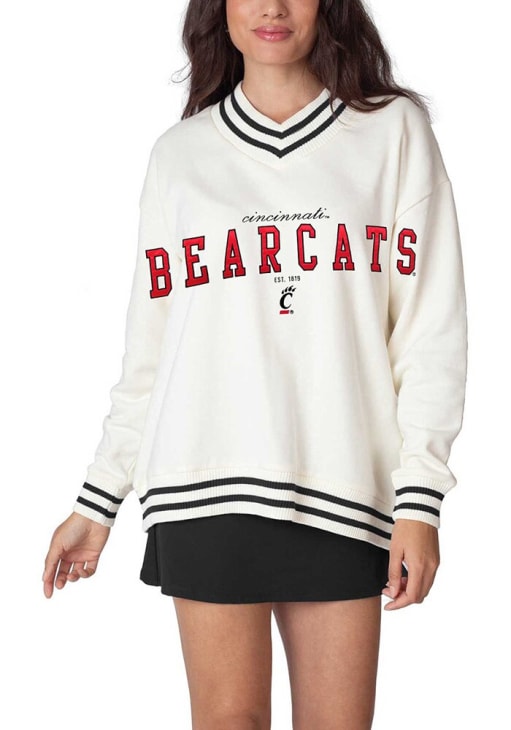 Gear up for the ultimate game day experience with this remarkable Cincinnati BearcatsWomens White Letterman Crew Sweatshirt! Designed with the true fan in mind, this Bearcats Long Sleeve Sweatshirt features a satin applique and embroidered team name and logo on center chest. Stay warm and comfortable with this Womens Cincinnati Bearcats Crew Sweatshirt.