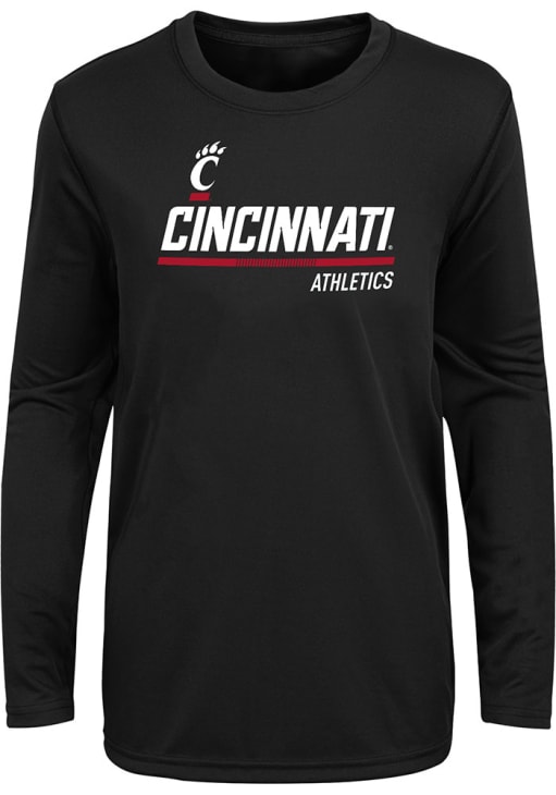 Step-up your style in this Youth Black Bearcats Long Sleeve T-Shirt. This Cincinnati Long Sleeve Tee is a great way to show off your team spirit. It features a screen print team graphic on center chest that is perfect to wear whenever you are on the move.