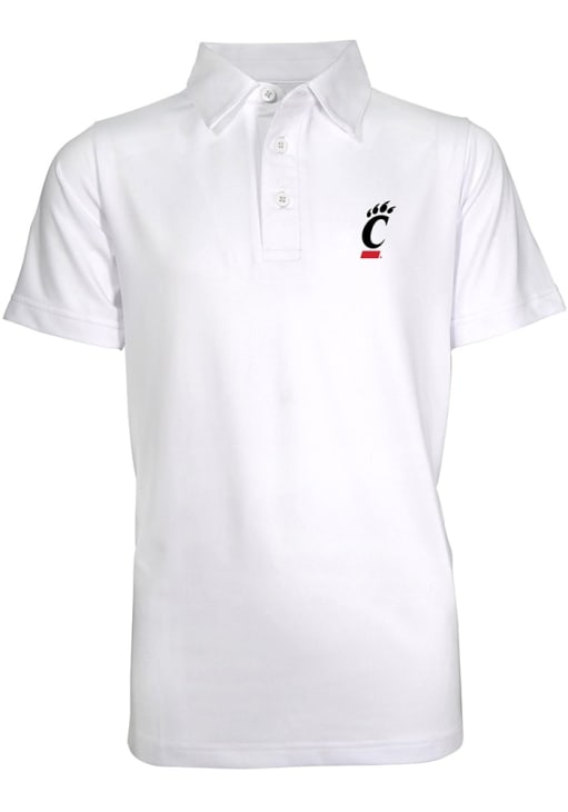 Product Details Product Details Rubber buttons3 button placketPerformance moisture wickingShort sleeve poloPerfect for any young sports fan!Polyester/SpandexImport, Domestic Officially Licensed Your little Cincinnati Bearcats fan will be the cutest at the game in this White Cincinnati Bearcats Blake Polo Shirt. This Blake Polo Shirt features a moisture wicking design.