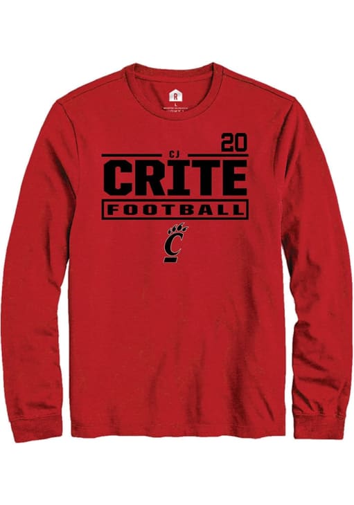 Embrace the spirit of your favorite player in this Cincinnati Bearcats Red Football NIL Stacked Box Cj Crite Long Sleeve Player Tee! This Player T Shirt features a NIL graphic, so everyone will know you cheer for Cincinnati, Cj Crite! This is the perfect Bearcats Player Tee for game days. Go Bearcats!!