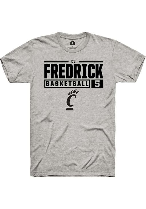 Cj Fredrick Ash Cincinnati Bearcats NIL Stacked Box Short Sleeve T Shirt