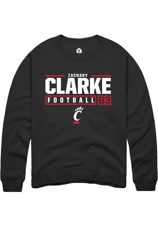 Zachary Clarke Rally Mens Black Cincinnati Bearcats NIL Stacked Box Crew Sweatshirt