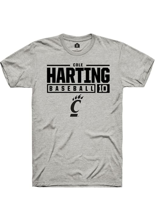 Cole Harting Ash Cincinnati Bearcats NIL Stacked Box Short Sleeve T Shirt
