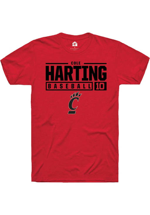 Cole Harting Red Cincinnati Bearcats NIL Stacked Box Short Sleeve T Shirt