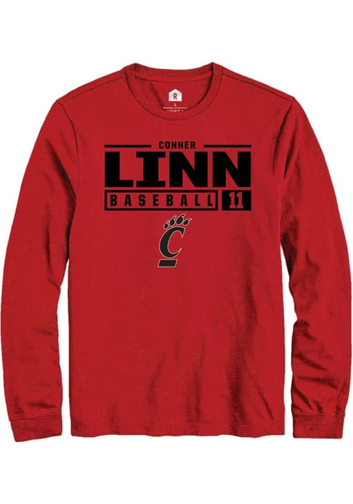Conner Linn Rally Mens Red Cincinnati Bearcats NIL Stacked Box Tee
