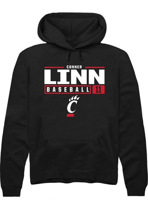 Conner Linn Rally Mens Black Cincinnati Bearcats NIL Stacked Box Hooded Sweatshirt