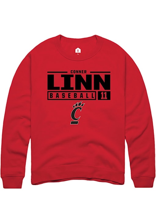 Conner Linn Rally Mens Red Cincinnati Bearcats NIL Stacked Box Crew Sweatshirt