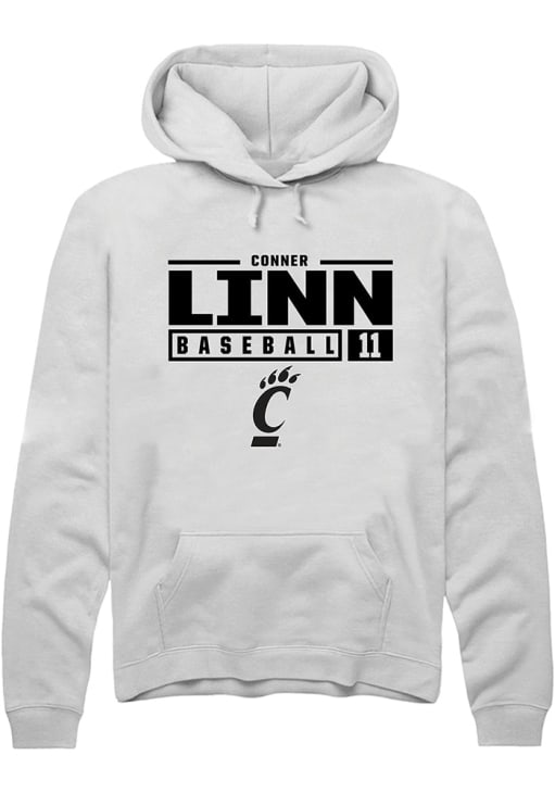 Conner Linn Rally Mens White Cincinnati Bearcats NIL Stacked Box Hooded Sweatshirt
