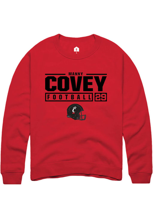 Manny Covey Rally Mens Red Cincinnati Bearcats Football NIL Stacked Box Crew Sweatshirt