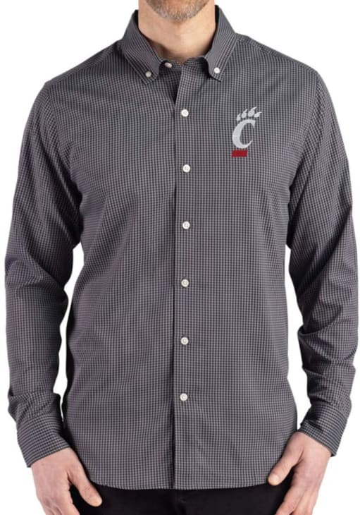 Show your Bearcats spirit show in the office with this Cincinnati Bearcats Dress Shirt! Embrace your team spirit and showcase it proudly in this Mens Black Gingham LS Woven Long Sleeve Long Sleeve Button Down Shirt. This Long Sleeve Dress Shirt features a team logo.