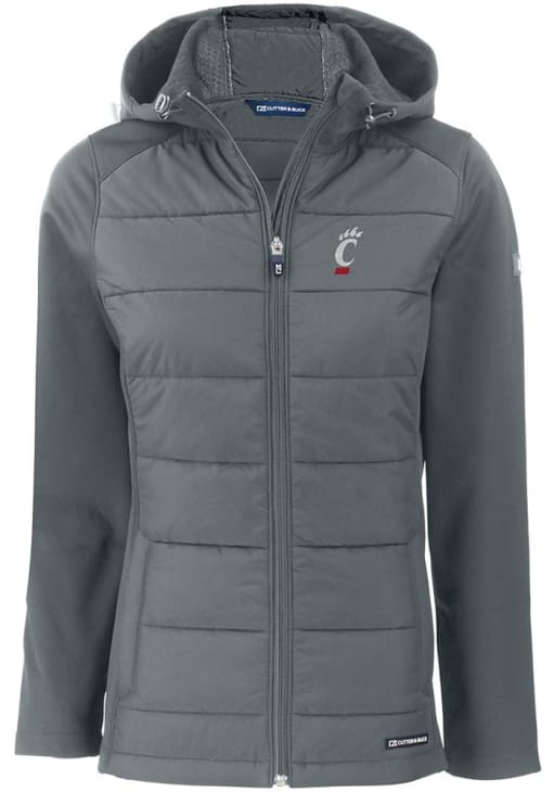 Stay warm and cozy with this Cincinnati Bearcats Womens Grey Evoke Hood Heavy Weight Jacket! Cheer on the Bearcats in this Cincinnati Heavy Weight Jacket. With a 100% recycled polyester bonded honeycomb softshell, you won't want to be caught without this Heavy Weight Jacket on gameday.