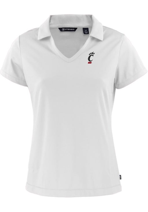 Enhance your professional style with this striking Womens White Short Sleeve Polo Shirt! Showcase your team pride among colleagues with this exceptional Cincinnati White Daybreak V Neck Short Sleeve Polo. Stand out and make a statement in this Cincinnati Bearcats Short Sleeve Polo, featuring a moisture wicking material that adds a touch of distinction to your look.