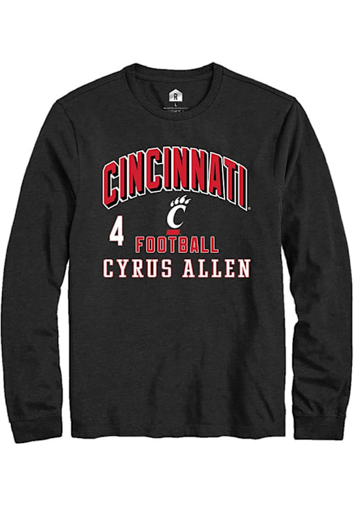 Embrace the spirit of your favorite player in this Cincinnati Bearcats Black Football NIL Arch Logo Cyrus Allen Long Sleeve Player Tee! This Player T Shirt features a NIL graphic, so everyone will know you cheer for Cincinnati, Cyrus Allen! This is the perfect Bearcats Player Tee for game days. Go Bearcats!!