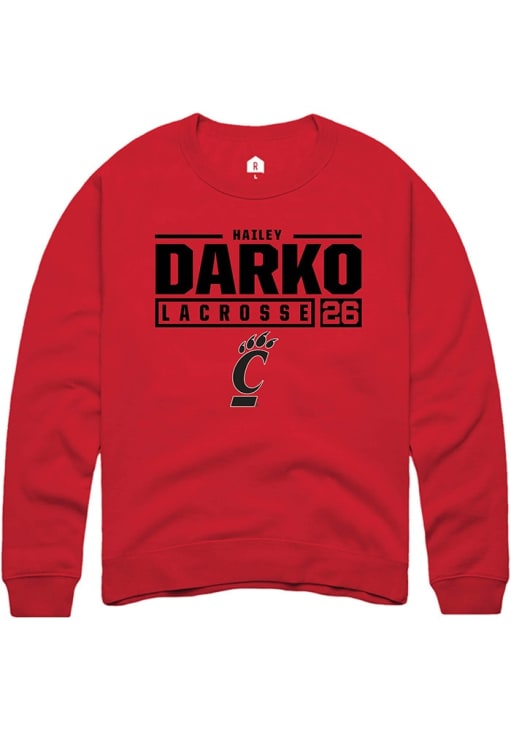 Hailey Darko Rally Mens Red Cincinnati Bearcats NIL Stacked Box Crew Sweatshirt