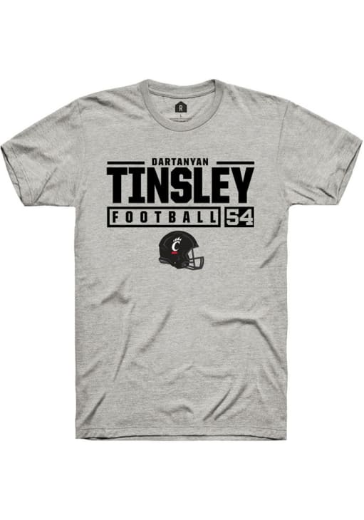Dartanyan Tinsley Ash Cincinnati Bearcats NIL Stacked Box Short Sleeve T Shirt