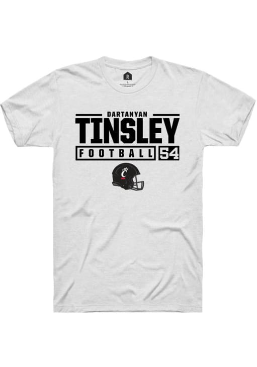 Dartanyan Tinsley White Cincinnati Bearcats NIL Stacked Box Short Sleeve T Shirt