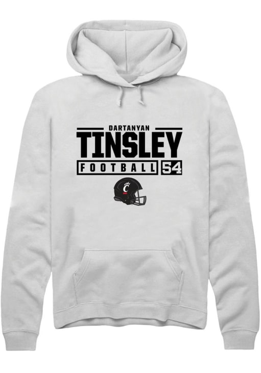 Dartanyan Tinsley Rally Mens White Cincinnati Bearcats NIL Stacked Box Hooded Sweatshirt