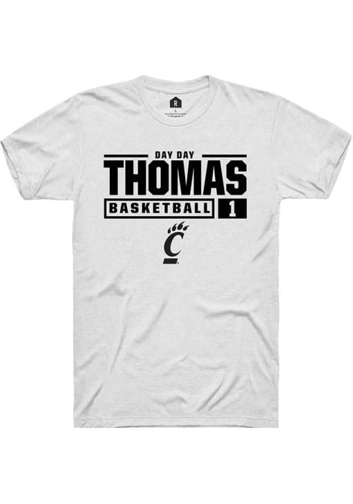 Day Day Thomas White Cincinnati Bearcats NIL Stacked Box Short Sleeve T Shirt
