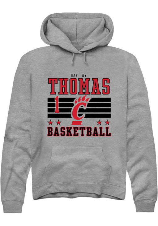 Day Day Thomas Rally Mens Grey Cincinnati Bearcats NIL Striped Hooded Sweatshirt