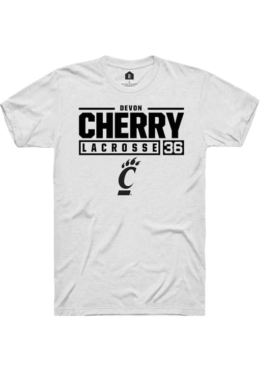 Devon Cherry White Cincinnati Bearcats NIL Stacked Box Short Sleeve T Shirt