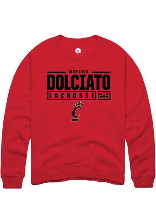 Marissa Dolciato Rally Mens Red Cincinnati Bearcats NIL Stacked Box Crew Sweatshirt