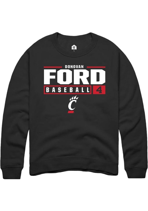 Donovan Ford Rally Mens Black Cincinnati Bearcats NIL Stacked Box Crew Sweatshirt