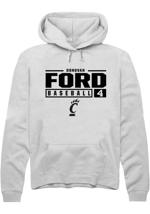 Donovan Ford Rally Mens White Cincinnati Bearcats NIL Stacked Box Hooded Sweatshirt