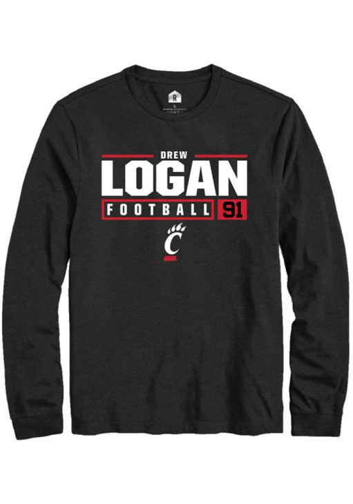 Drew Logan Rally Mens Black Cincinnati Bearcats NIL Stacked Box Tee