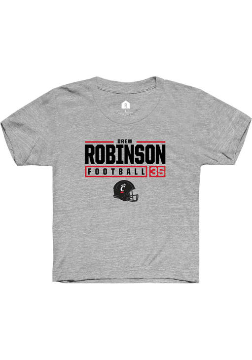 Drew Robinson Rally Youth Grey Cincinnati Bearcats NIL Stacked Box Short Sleeve T-Shirt