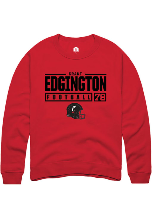 Grant Edgington Rally Mens Red Cincinnati Bearcats NIL Stacked Box Crew Sweatshirt