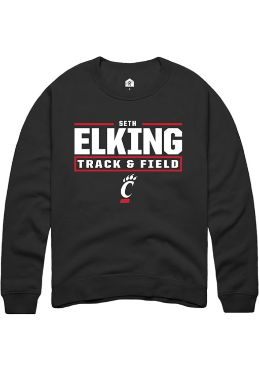 Seth Elking Rally Mens Black Cincinnati Bearcats NIL Stacked Box Crew Sweatshirt