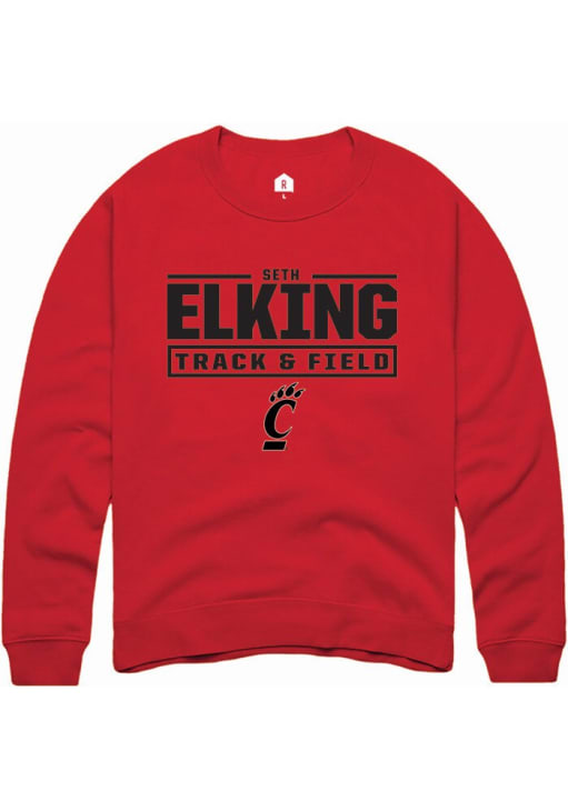 Seth Elking Rally Mens Red Cincinnati Bearcats NIL Stacked Box Crew Sweatshirt