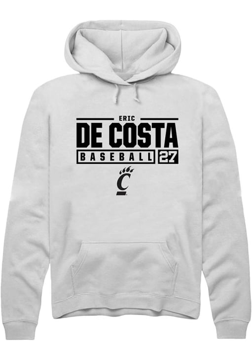 Eric De Costa Rally Mens White Cincinnati Bearcats NIL Stacked Box Hooded Sweatshirt