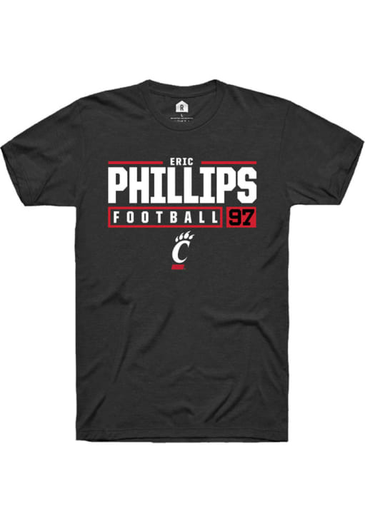 Eric Phillips Black Cincinnati Bearcats NIL Stacked Box Short Sleeve T Shirt