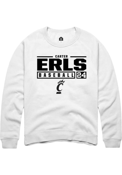 Carter Erls Rally Mens White Cincinnati Bearcats NIL Stacked Box Crew Sweatshirt