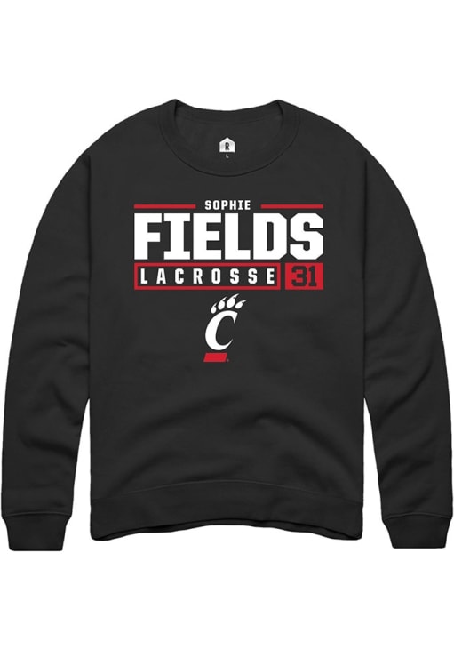 Sophie Fields Rally Mens Black Cincinnati Bearcats NIL Stacked Box Crew Sweatshirt