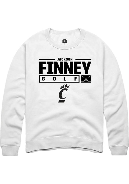 Jackson Finney Rally Mens White Cincinnati Bearcats NIL Stacked Box Crew Sweatshirt