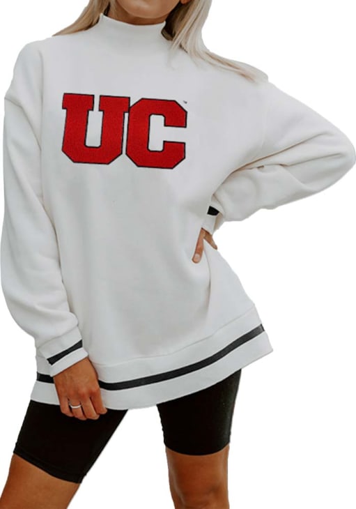 Gear up for the ultimate game day experience with this remarkable Cincinnati BearcatsWomens White This Is It Mock Neck Crew Sweatshirt! Designed with the true fan in mind, this Bearcats Long Sleeve Sweatshirt features a chenille patch on center chest. Stay warm and comfortable with this Womens Cincinnati Bearcats Crew Sweatshirt.