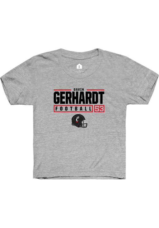 Gavin Gerhardt Rally Youth Grey Cincinnati Bearcats NIL Stacked Box Short Sleeve T-Shirt