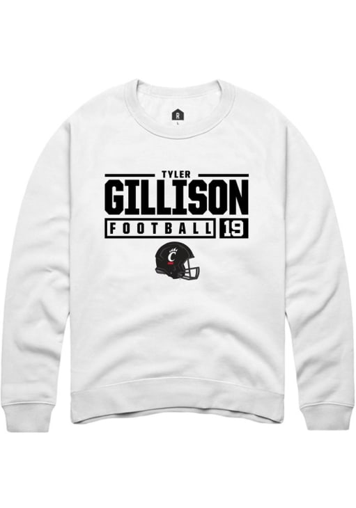 Tyler Gillison Rally Mens White Cincinnati Bearcats NIL Stacked Box Crew Sweatshirt