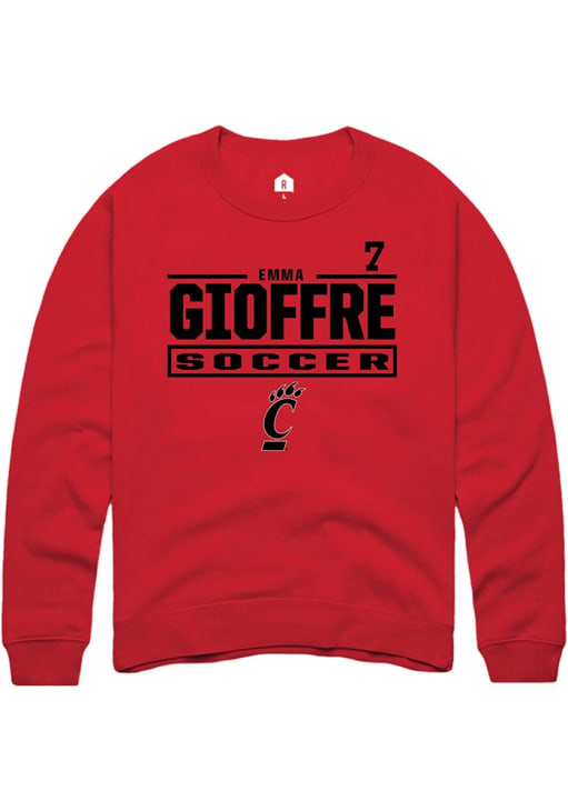 Emma Gioffre Rally Mens Red Cincinnati Bearcats NIL Stacked Box Crew Sweatshirt